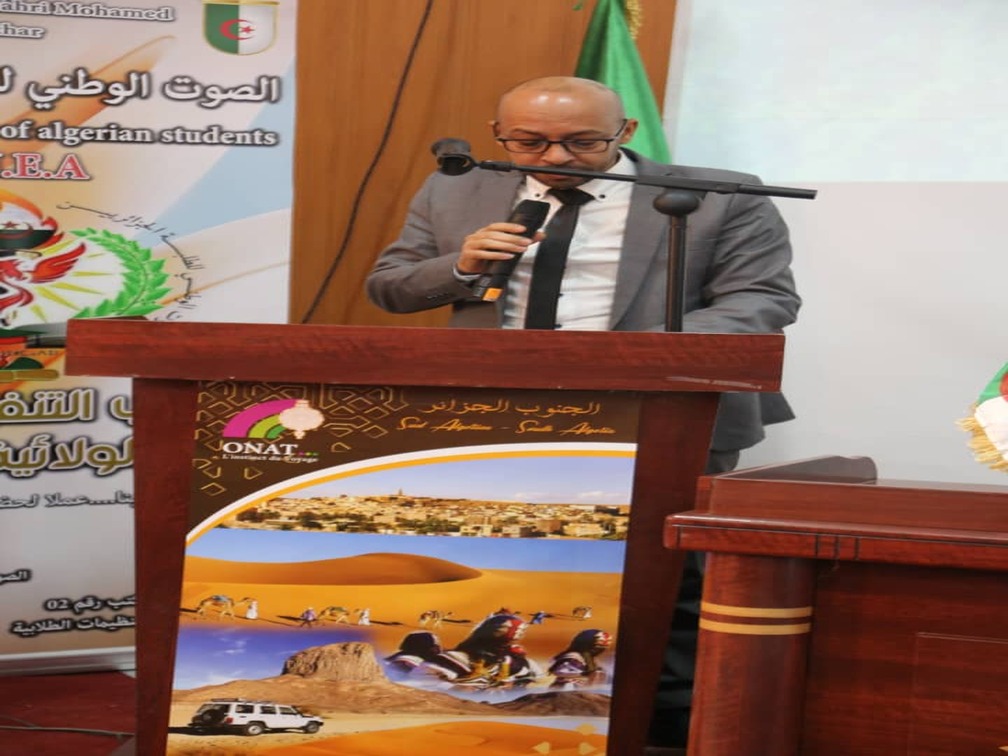 تحت الرعاية السامية للسيد والي ولاية بشار تم يوم 18 ديسمبر 2022 تنظيم يوم دراسي بعنوان تفعيل رأس المال الفكري في منظمات المجتمع المدني لتعزيز خيارات السياحة الصحراوية من أجل تحقيق التنمية المستدامة بجامعة طاهري محمد ببشار وبالتعاون والتنسيق مع مديرية السياحة والصناعات التقليدية لولاية بشار وغرفة الصناعات التقليدية والحرف ومركز الدعم والاستشارة للمؤسسات الصغيرة والمتوسطة والجمعية الولائية الرحالة للتنمية السياحية وتطويرها والتحالف من أجل التجديد الطلابي الوطني والصوت الوطني للطلبة الجزائريين حيث توجت أشغال هذا اليوم بالوصول الى عدة اقتراحات وتوصيات تدعم مساعي الدولة الجزائرية في اتجاه تطوير هذا القطاع الحساس، كما تم إبرام اتفاقية تعاون وشراكة بين الجامعة ومركز الدعم والاستشارة للمؤسسات الصغيرة والمتوسطة في اطار تحسين مرافقة الطلبة لتجسيد افكارهم الإبداعية والابتكارية من أجل انشاء مؤسسات ناشئة.