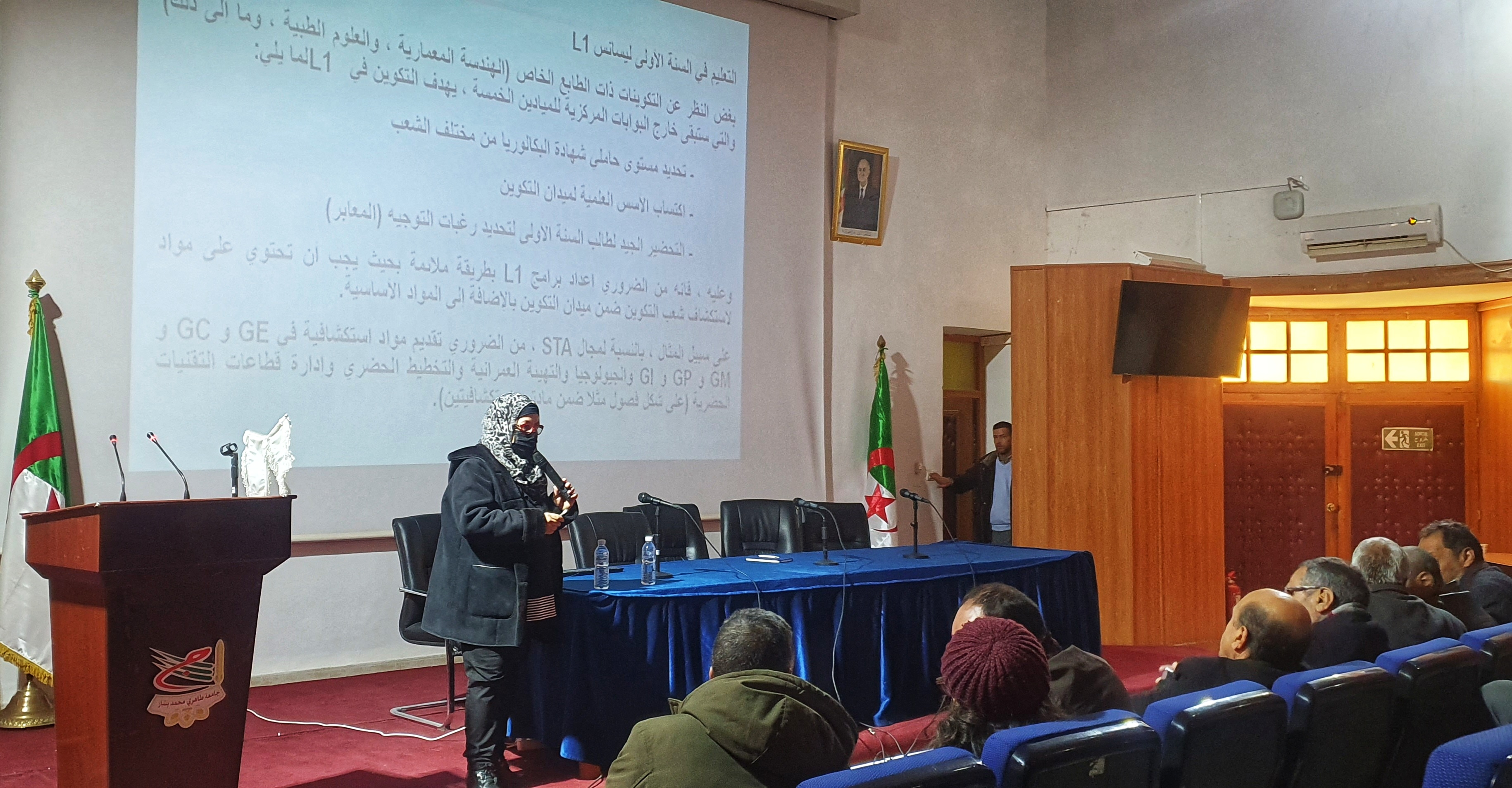 نقاش مستفيض وتباحث عميق أهم ما ميز اللقاء الذي احتضنته جامعة طاهري محمد -بشار يوم 25 يناير 2023 بإشراف السيدة أمين فايزة نائب مدير التكوين للطور الأول لدى وزارة التعليم العالي والبحث العلمي، اللقاء الذي شهد حضور الفاعلين من الأسرة الجامعية (الأساتذة، مسؤولو البيداغوجيا، ممثلو الطلبة) وشركاء القطاع محليا (ممثلو مديرية التربية، مفتشو التربية، جمعية أولياء التلاميذ) حيث قدمت ممثلة الوزارة عرضا لتصورات مجموعة العمل لعصرنة الجامعة في الشق التكويني: