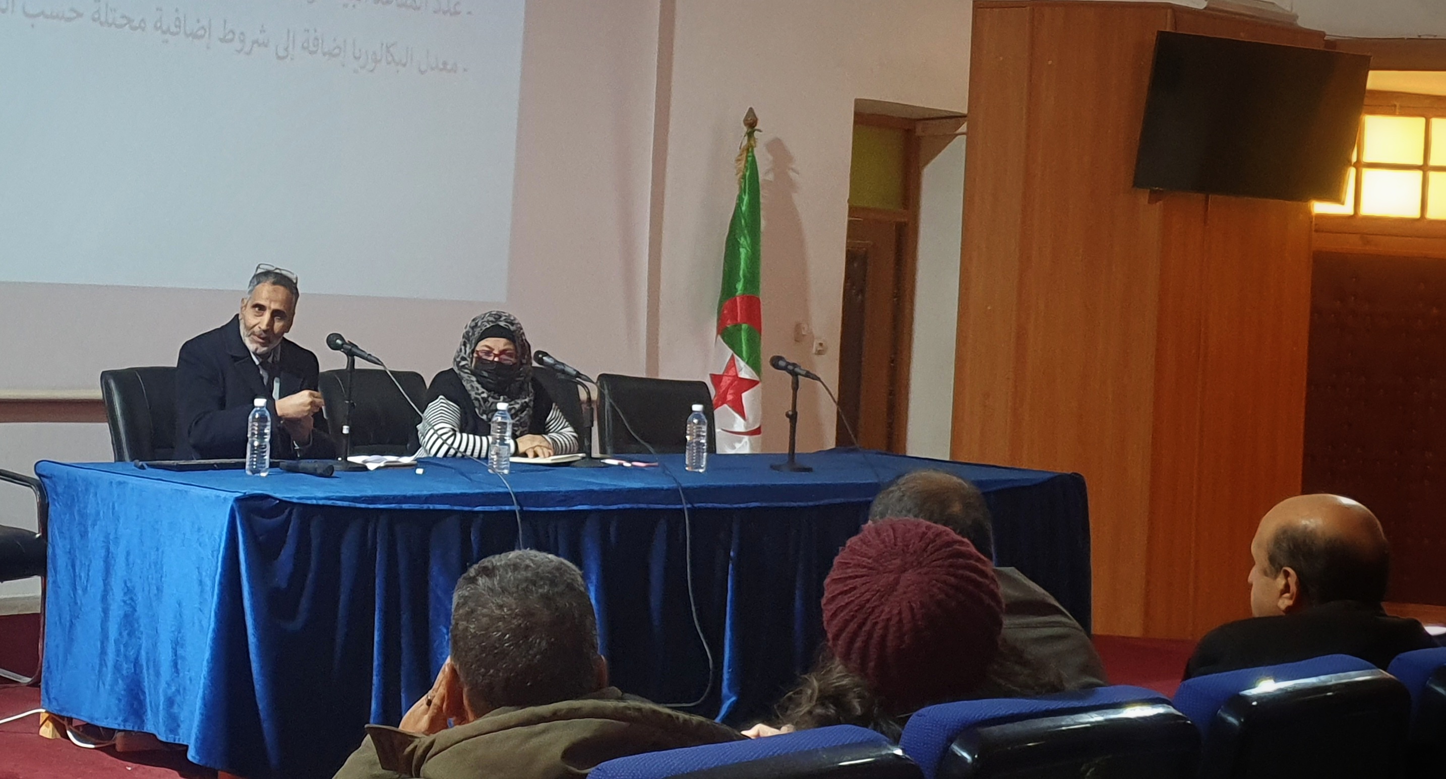الفاعلون الجامعيون والشركاء المحليون يناقشون المشروع التمهيدي الخاص بعصرنة الجامعة الجزائرية بإشراف السيدة أمين فايزة نائب مدير التكوين للطور الأول لدى وزارة التعليم العالي والبحث العلمي والسيد مجاود محمد مدير جامعة طاهري محمد -بشار