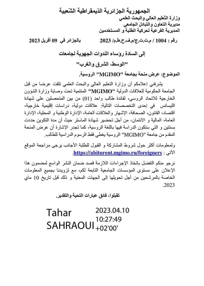 الرئيسية/كلية الحقوق و العلوم السياسية/عرض منحة بجامعة MGIMO الروسية عرض منحة بجامعة MGIMO الروسية 12 أبريل 2023 919 أقل من دقيقة 12 أبريل 2023 919 أقل من دقيقة شاركها فيسبوك تويتر لينكدإن بينتيريست ماسنجر ماسنجر واتساب تيلقرام ڤايبر مشاركة عبر البريد طباعة