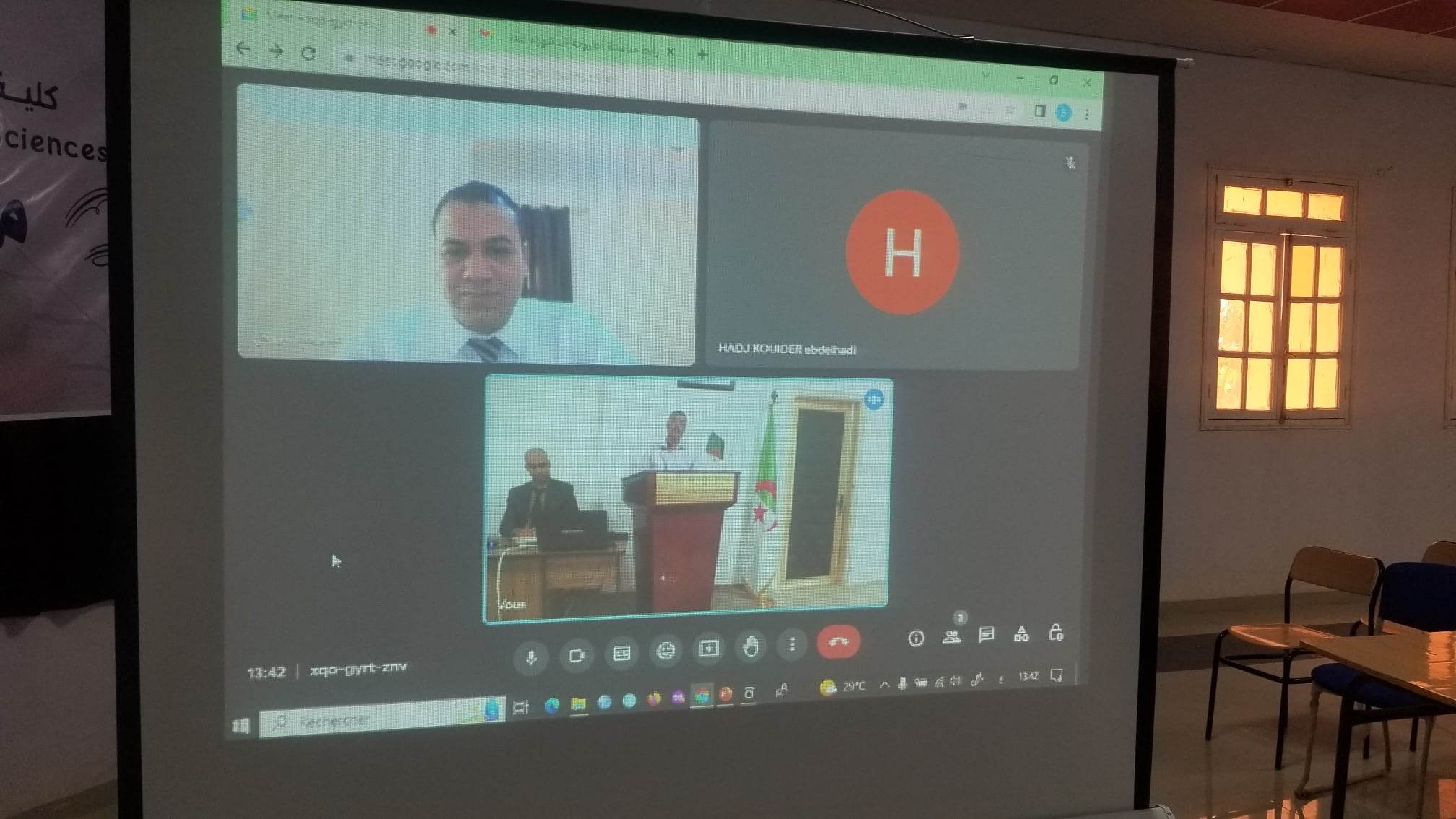 و جاءت هده المناقشة تماشيا مع توجيهات وزارة التعليم العالى و البحث العلمي في إطار الرقمنة و تجسيد عملية مناقشة أطروحات الدكتوراه بشكل إلكتروني من البداية عند إيداع الأطروحة إلى المناقشة بإتباع سياسة صفر ورقة .و حضر عند بداية المناقشة ممثل مدير الجامعة نائب مدير الجامعة المكلف بالتكوين العالي في مابعد التدرج و التأهيل الجامعي و البحث العلمي ا.د باسو عبد السلام و أعطى كلمة بهده المناسبة و كذلك عميد كلية العلوم الإقتصادية و التجارية و علوم التسيير ا.د بوسهمين أحمد و نائب عميد الكلية المكلف بما بعد التدرج ا.د بلحاج فراجي كأول اطروحة على مستوى الكلية و الجامعة تناقش إلكترونيا بسياسة صفر ورقة .