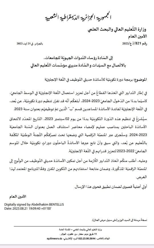 دورة تكوينيّة في اللّغة الإنجليزية لفائدة الأساتذة حديثي التَّوظيف.