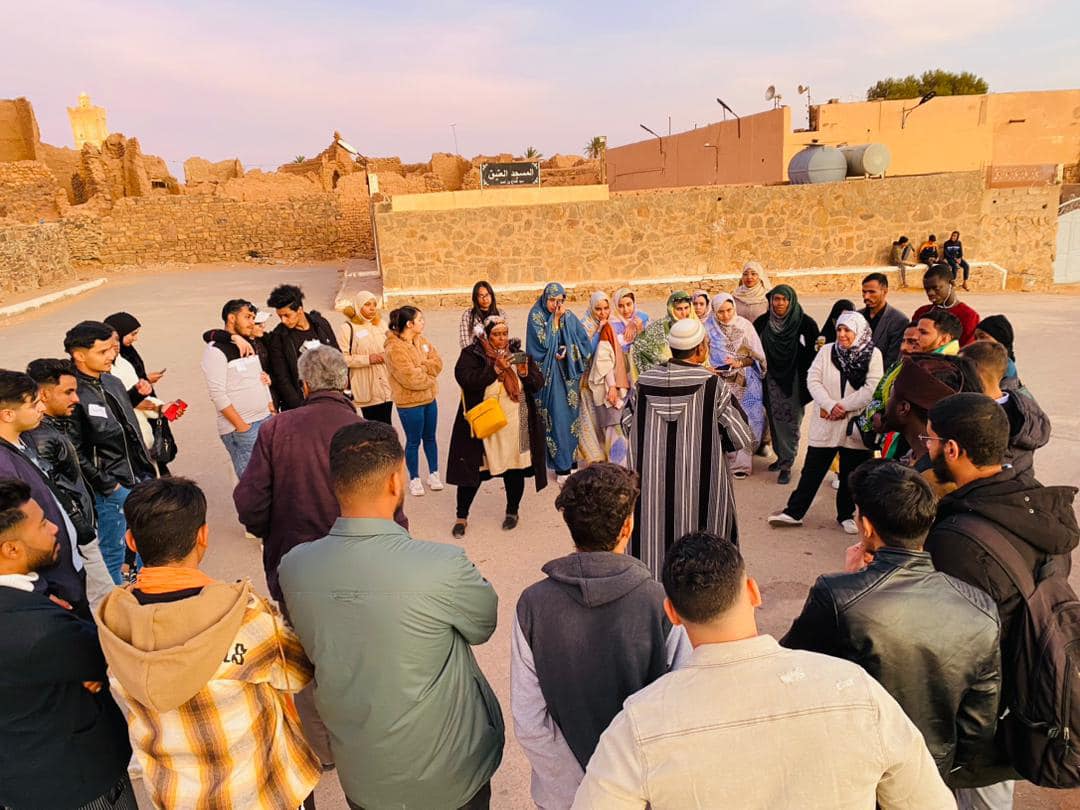 في إطار Marhaba Day نظمت جامعة طاهري محمد – بشار ومكتب تييير شؤون الطلبة الدوليين برئاسة السيدة فيزازي أسماء بالتنسيق مع مديرية الخدمات الجامعية – بشار يوم ترحيبي للطلبة الدوليين بجامعتنا ؛ حيث عرف هذا اليوم زيارة لمدينة القنادسة لتعرفهم عليها و في أولى محطاته كانت للطلبة زيارة للمتحف البلدي القنادسة رفقة السيد كرومي عبد الحق مدير المركز الثقافي القنادسة والأستاذ بركاني عبد العزيز ؛ و في المحطة الثانية زيارة إلى المسجد العتيق للقنادسة للشيخ سيدي أمحمد بن أبي زيان أين استطاع الطلبة التعرف على تاريخ القصر العتيق وعلى مدينة القنادسة في ساحات القصر رفقة السيد سلطاني وصولا إلى الدويرية أين كانت محطة للتعارف للطلبة فيما بينهم في فقرة تنشيطية للسيدة بغدادي إكرام رئيس مصلحة التنشيط والاتصال والتظاهرات العلمية ؛ و تلى ذلك جلسة ومأدبة عشاء على شرفهم بحضور السيد والي الولاية السيد محمد السعيد بن ڤامو والوفد المرافق له و رئيس دائرة القنادسة والمجلس البلدي القنادسة والسيد مدير الجامعة البروفيسور مجاود محمد ونوابه وعمداء الكليات ونوابهم والسيد المدير الفرعي للأنشطة العلمية والثقافية والرياضية وطاقمه ومدير الخدمات الجامعية -بشار وطاقمه ومدراء الاقامات والأسرة الجامعية ، إذ أكد السيد مدير الجامعة البروفيسور مجاود محمد في كلمته حول الاهتمام الذي توليه جامعة بشار على حرصها الدائم في مرافقة الطلبة الدوليين في حياتهم البيداغوجية والطلابية بجامعتنا وحصول جامعة بشار على ” وسم أدرس في الجزائر ” ، كما أضاف الطلبة الدوليين من مختلف جنسياتهم و دولهم ( فلسطين ، سوريا ، موريطانيا ، الصحراء الغربية ، مالي ، النيجر ،…) أن جامعة بشار تسهر على مرافقتهم و رعايتهم في حياتهم الطلابية من جميع الجوانب بإشراف للسيد مدير الجامعة البروفيسور مجاود محمد والسيد نائب مدير الجامعة المكلف بالبيداغوجية البروفيسور بلدغم محمد والسيد نائب مدير الجامعة المكلف بالعلاقات الخارجية الدكتور سعيدي عبد الكريم وبمتابعة واهتمام فعاليين لمسؤولة تسيير شؤون مكتب الطلبة الدوليين فيزازي أسماء ؛ فهي شهادات حية للطلبة يدرسون في جامعة بشار بالجزائر التي يعتبرونها دولتهم الثانية بعد دولتهم الأم ، وكان هذا اليوم فرصة لهم لإستكشاف الثقافة الجزائرية بالأخص في ولاية بشار ومدينة القنادسة أين استطاعو ا أخذ صور تذكارية في معالم تاريخية وتقليدية للإحتفاظ بها ومشاركتها في دولهم مع عائلاتهم وأشقائهم و زملائهم