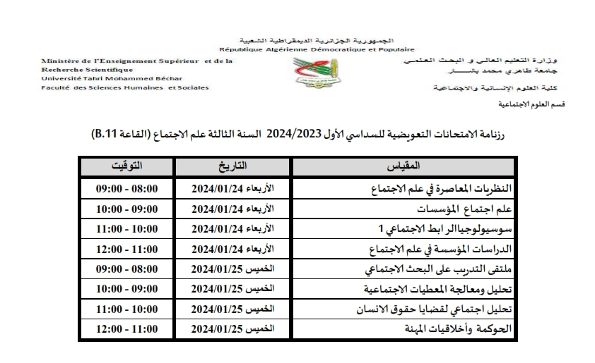 – الامتحانات التعويضية للسنة الثالثة علم الإجتماع: