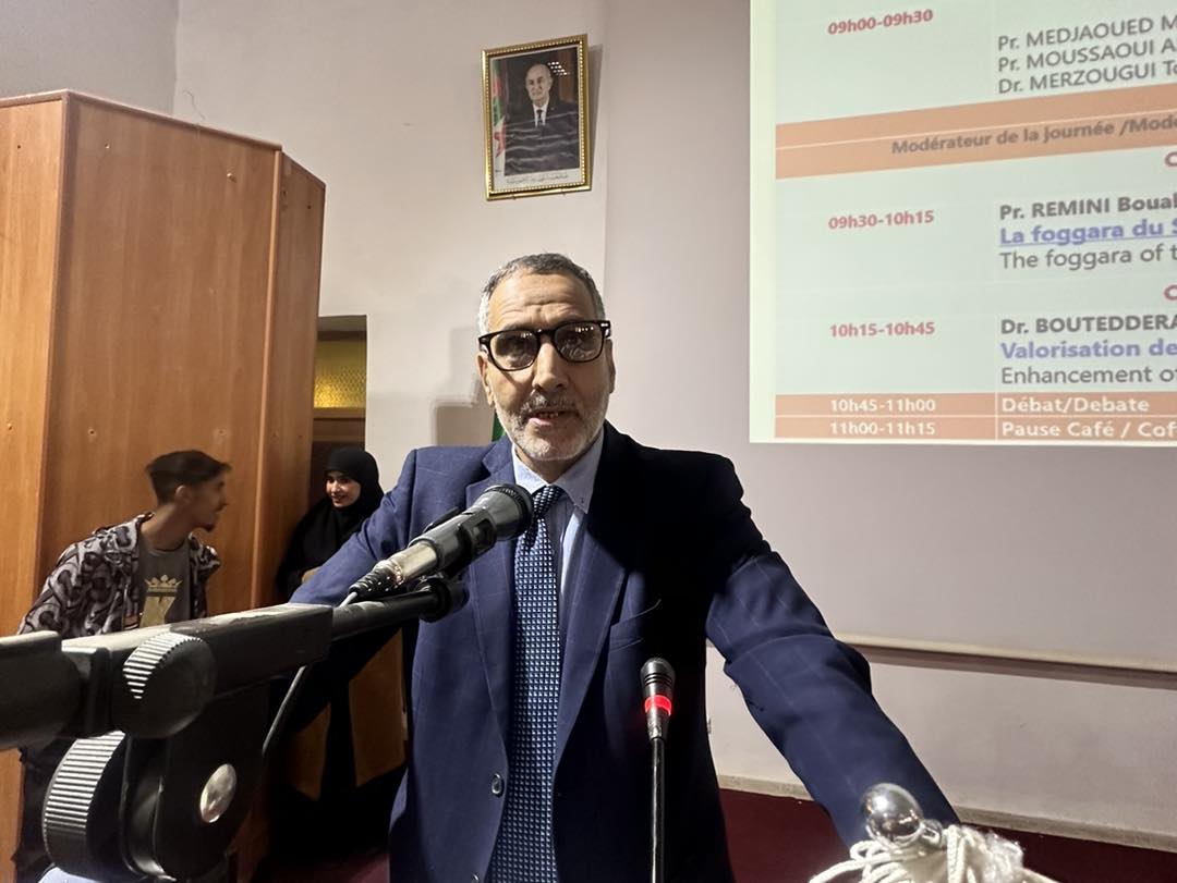 السيد مدير الجامعة البروفيسور محمد مجاود يفتتح اليوم الدراسي Le Foggaras du Sahara Algérien : génie Oasien المنظم من طرف كلية العلوم الطبيعية و الحياةتخلله تكريم كل من السيد مدير الجامعة ، السيد الامين العام للجامعة و البروفيسور رميني عبد الرحمن.