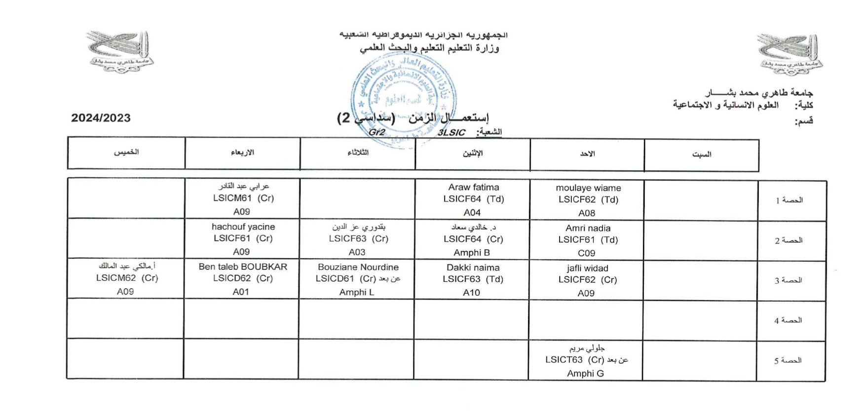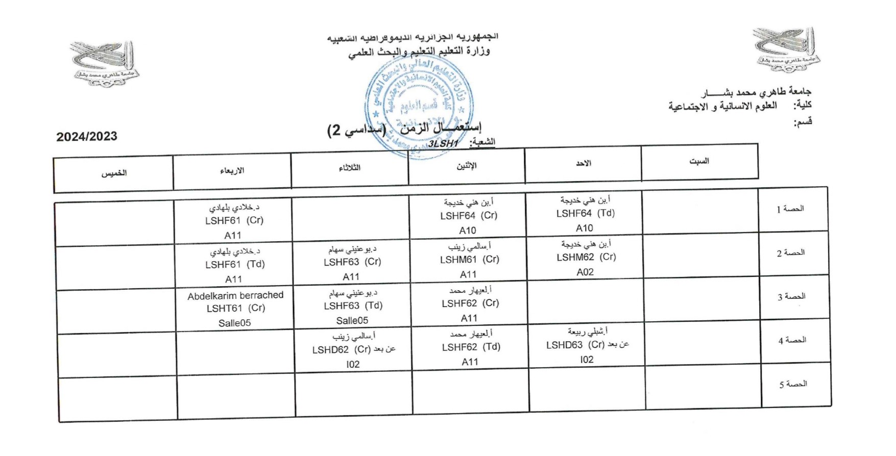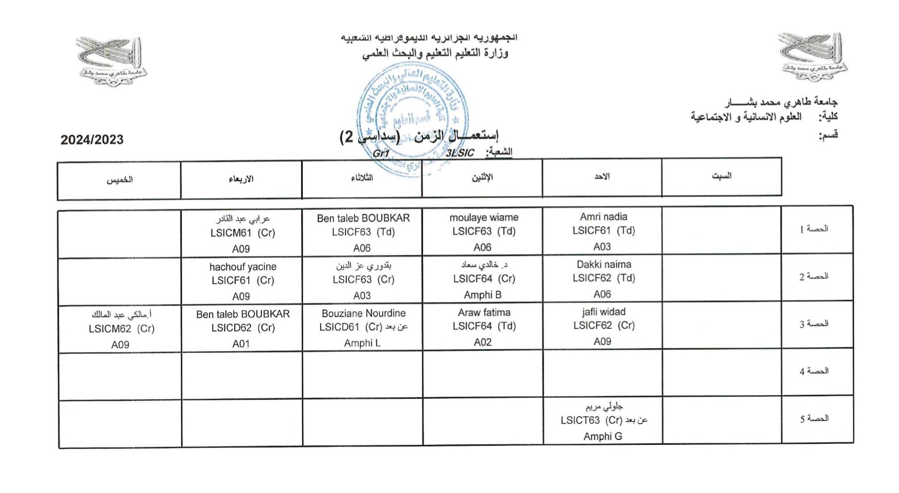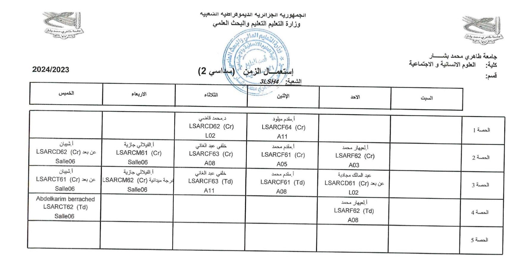 إستعمال الزمن لدفعات الثالثة ليسانس تخصص تاريخ: تخصص علم الآثار: تخصص إعلام واتصال: