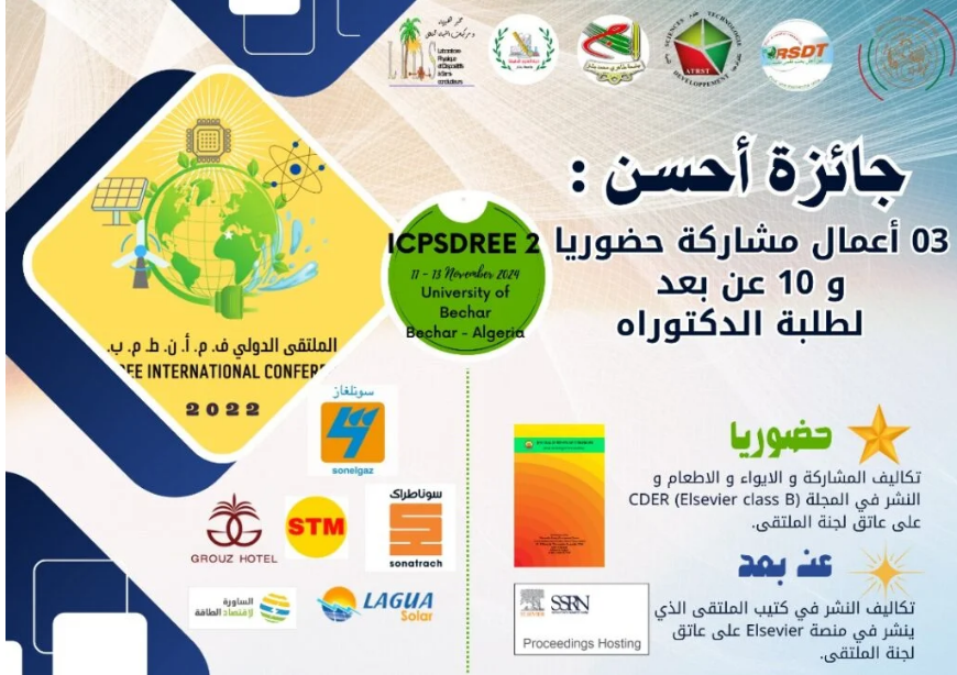 الملتقى الدولي الثاني حول فيزياء مركبات أشباه الناقل و الطاقات المتجددة و البيئة (icpsdree)، هو مؤتمر علمي حضوري تنظمه جامعة بشار، كلية العلوم الدقيقة – بشار، الجزائر. يهدف المؤتمر إلى تزويد المشاركين برؤى علمية متقدمة وتمكينهم من توسيع خبراتهم وتطوير مهاراتهم. يتضمن المؤتمر أربع جلسات رئيسية وجلسة خاصة واحدة.