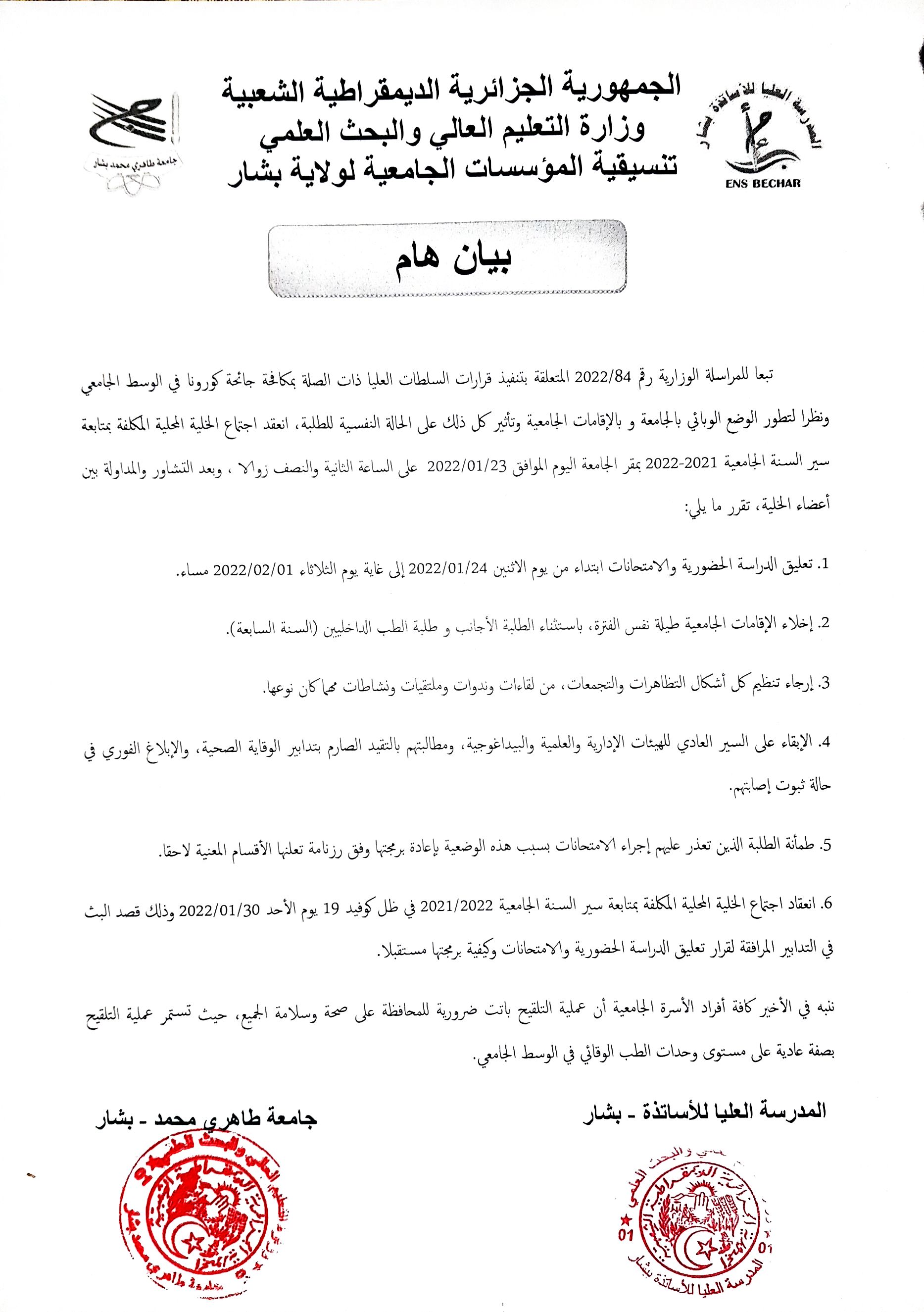 يرجى ملأ الاستمارة و إرسالها الى البريد الالكتروني التالي Questionnaire.covid19@univ-bechar.dz Télécharger