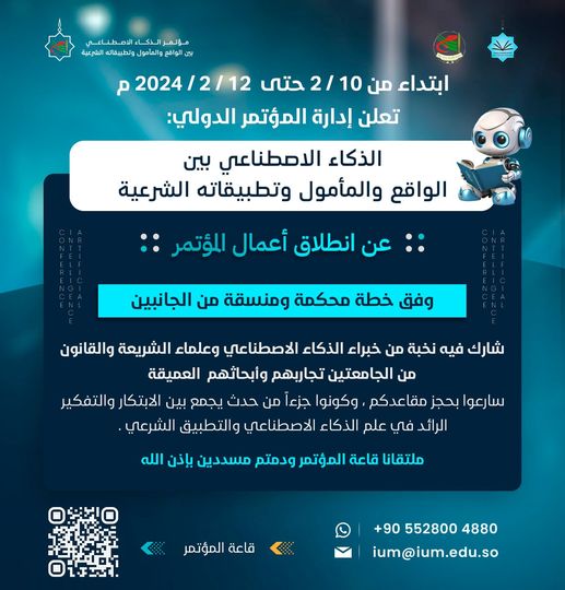 العاشر من فبراير 2024م تنطلق أولى جلسات أعمال المؤتمر الدولي: الذكاء الاصطناعي بين الواقع والمأمول وتطبيقاته الشرعية الذي تنظمه الجامعة…