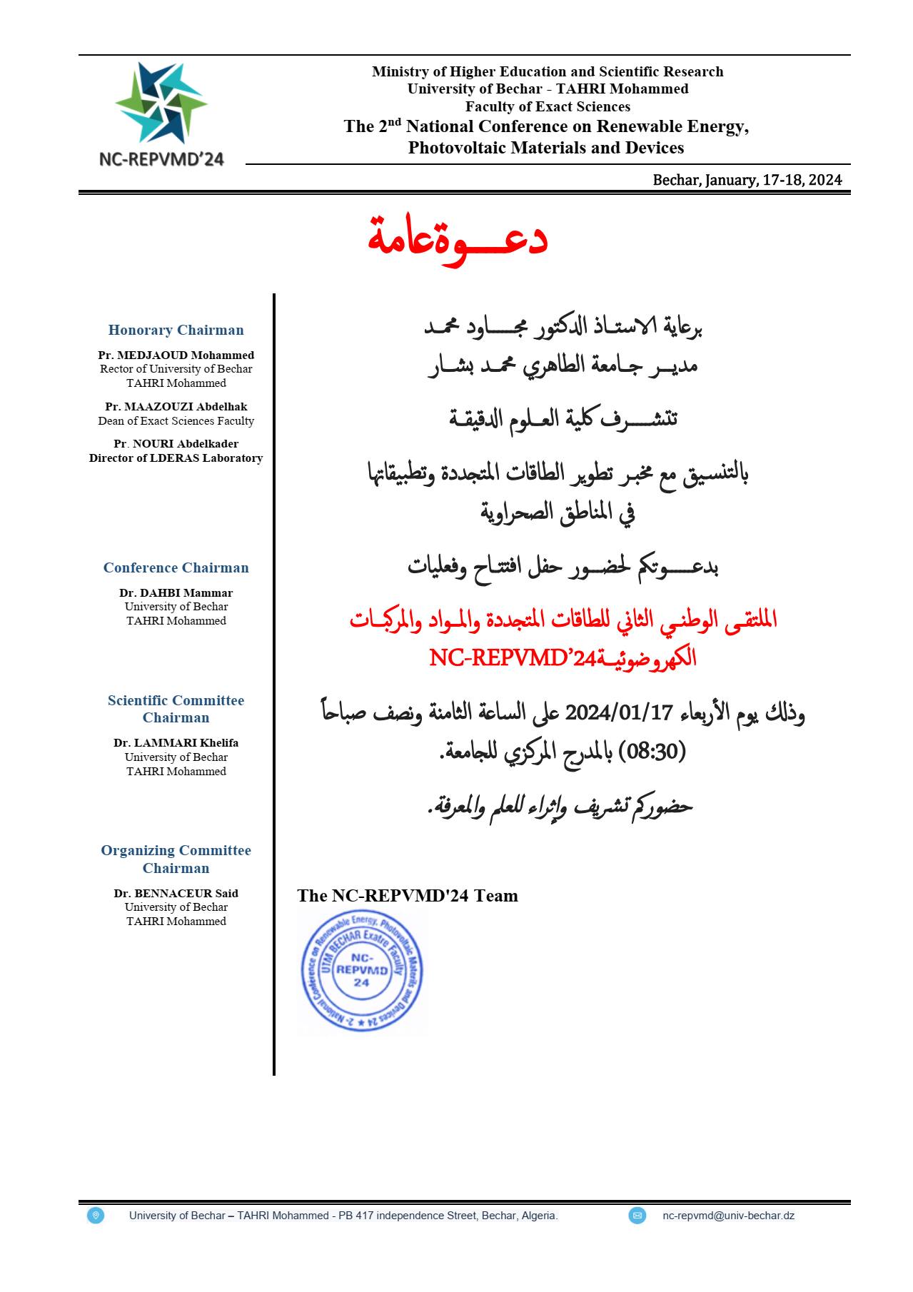 السيد مدير الجامعة البروفيسور محمد مجاود يفتتح الملتقى الوطني الثاني للطاقات المتجددة و المواد الكهروضوئية و مركباتها المنظم من طرف…