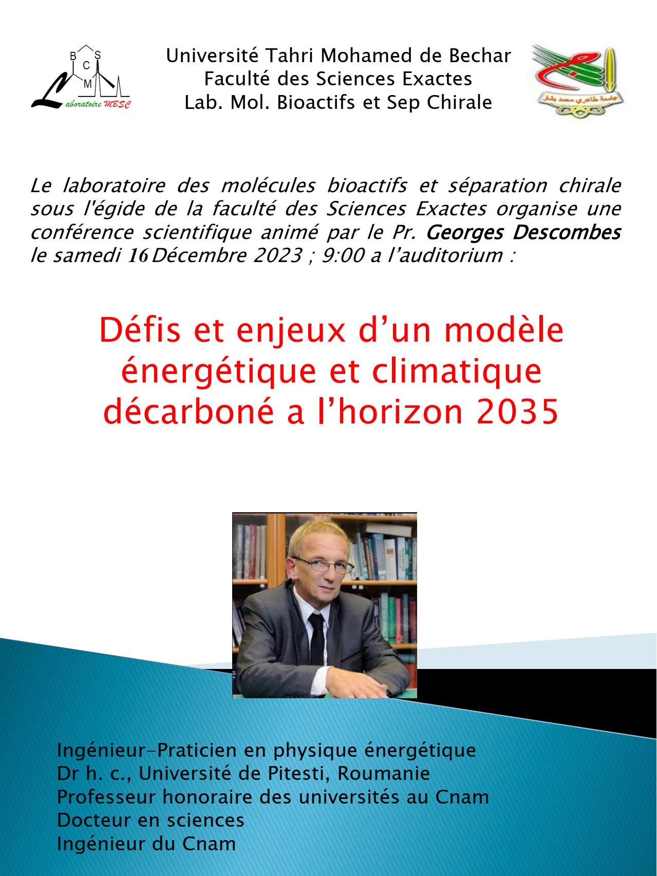 ينظم مختبر الجزيئات النشطة بيولوجيا والفصل اللولبي تحت رعاية كلية العلوم الدقيقة مؤتمرا علميا بقيادة البروفيسور جورج ديسكومب يوم السبت…
