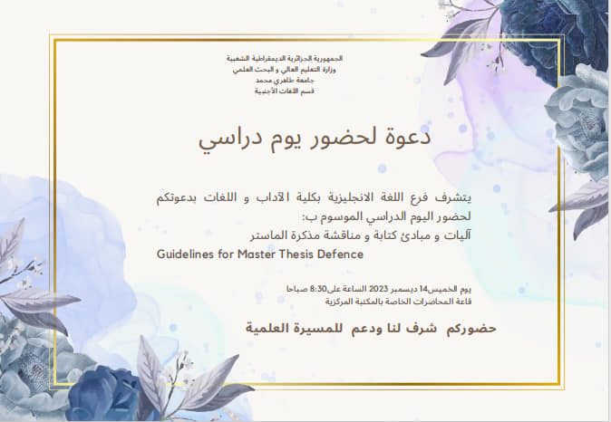 تتشرف #الاستاذة_مباركة_داودي ان تدعوا المهتمين من طلبة السنة الأولى فيزياء المواد و مهندس في اعلام آلي كلية العلوم الدقيقة بشار…
