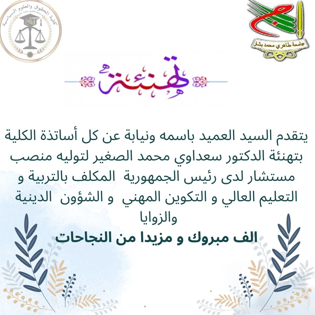 نظمت ادارة كلية الحقوق والعلوم السياسية اليوم الإثنين 09 اكتوبر 2023 . الساعة 09:30 امام المدرج المركزي للجامعة تأبينية الأستاذ…