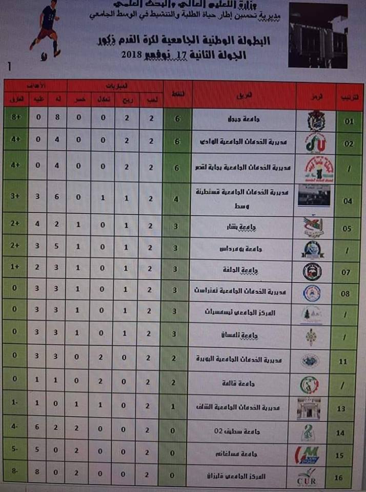 ترتيب نتائج مقابلات الجولة الثانية من البطولة الوطنية الجامعية لكرة القدم ذكور
