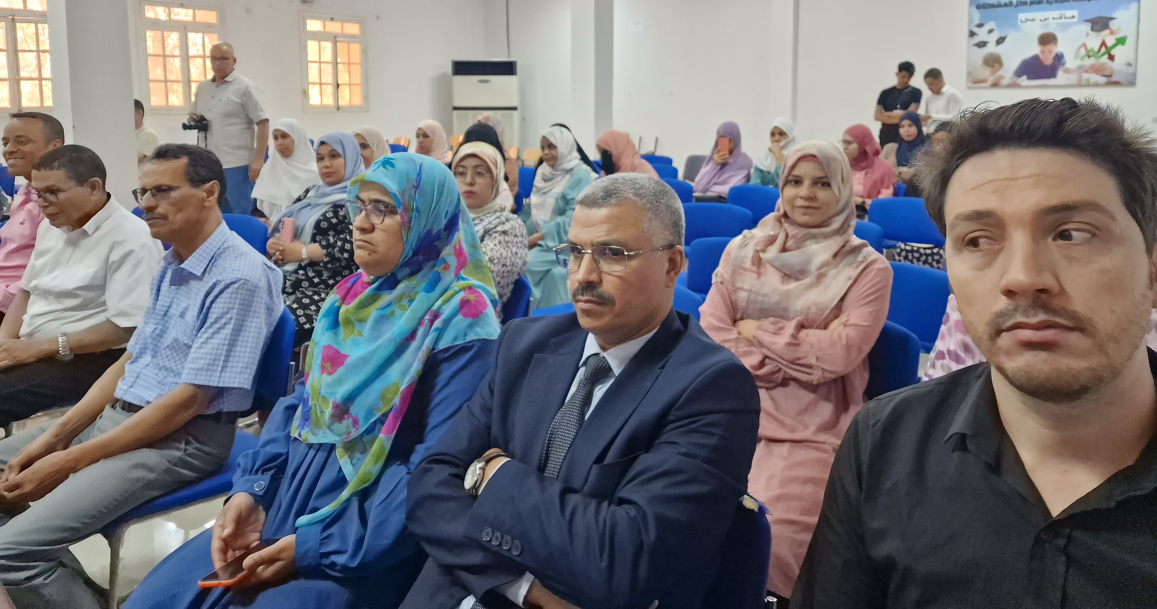 , marquée par la guerre cachée : la drogue (réalité, menace et nécessité d’affronter) à la Faculté d’Économie, Sciences Commerciales et de Gestion, en coordination avec le Laboratoire d’Etudes Economiques et de Développement Local du Sud-Ouest, et en présence de chacun des éléments suivants : Le sous-directeur chargé des relations extérieures, le doyen du collège, l’imam du mosquée Om Salama, un représentant de la sûreté nationale de l’Etat de Béchar, un représentant de la direction régionale des douanes, un psychiatre et un médecin-chef. Un groupe de professeurs d’université et d’étudiants…