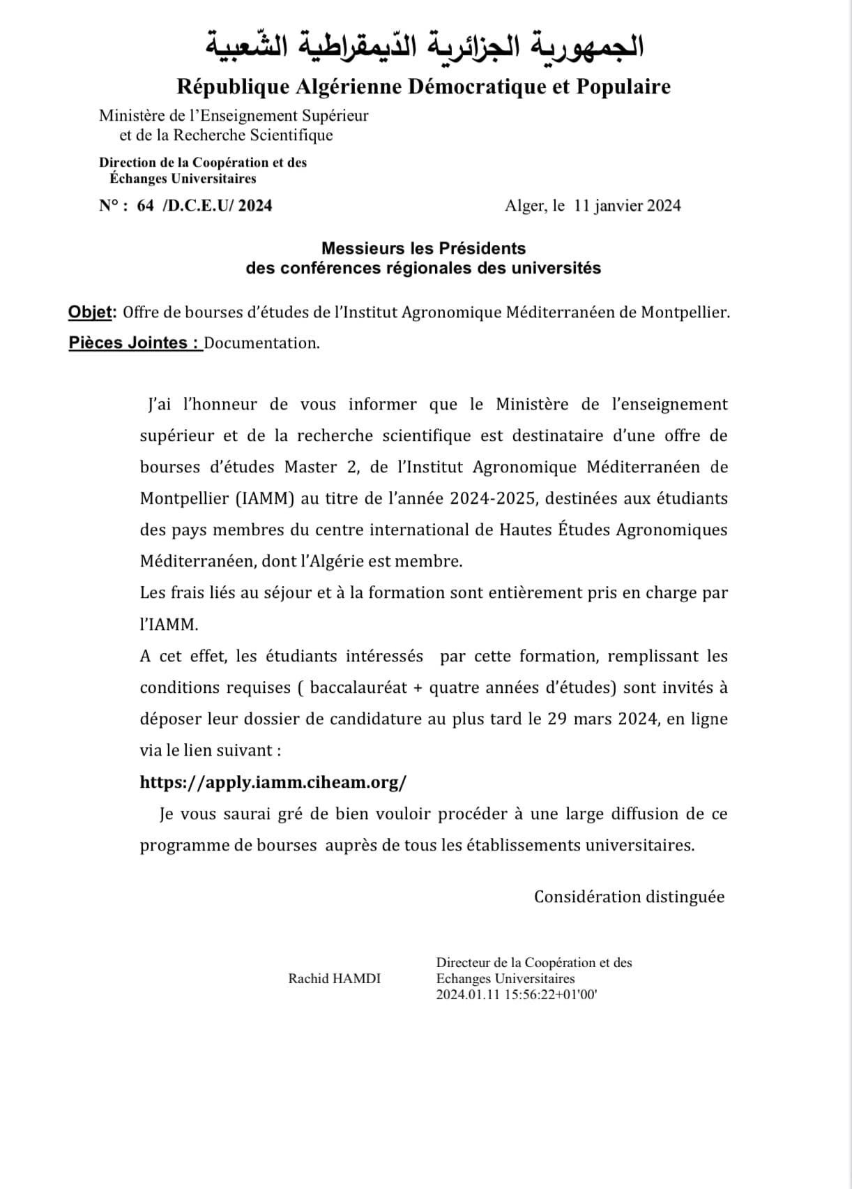 Accueil/univ/Univ Bourses/offre de bourses d’études de l’institut d’agronomique méditérranéen de montepellier Univ Bourses offre de bourses d’études de l’institut d’agronomique méditérranéen de montepellier 11 janvier 2024 98 Moins d’une minute 11 janvier 2024 98 Moins d’une minute Partager Facebook Twitter Linkedin Pinterest Messenger Messenger WhatsApp Telegram Viber Partager par email Imprimer